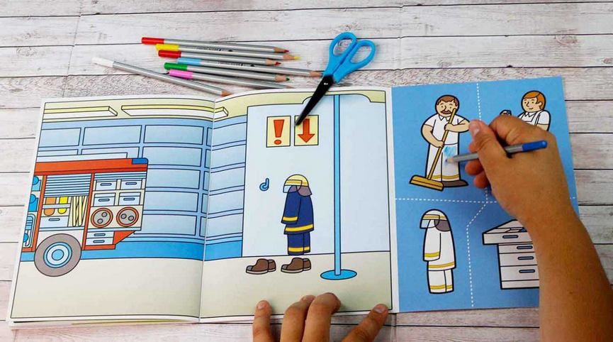Nechcete mít vystřihovánky Hasiči jen na jedno použití? Nechte děti nejprve vymalovat obrysy. Následně zalaminujte strany s obrázky a strany s obrysy. Poté pomozte dětem se stříhání obrysů. Následuje už nekonečná hra, kdy dítě hledá správné místo pro obrys (obdoba klasických vkládaček).