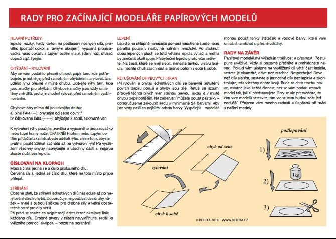 Nejjednodušší typ vystřihovánky určený do úplných modelářských začátků. Novinka pro úplné začátečníky: děti nejprve vystřihnou jednotlivé díly skládačky a pak je nalepí do předtištěných předloh. Orientují se pomocí očíslování jednotlivých dílků a podle barevné předlohy.