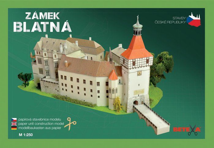Vystřihovánka se skládá ze základového plánu s vyznačenými plochami pro nalepení jednotlivých budov, jednotlivých dílů stavby, návodu na sestavení a to vše v měřítku 1:250. Jihočeský zámek Blatná patří k nejzachovalejším vodním panským sídlům. Současný stav vznikl podle návrhu architekta Bernarda Grübera. V té době vlastnil zámek Robert Hildprandt. Návod na sestavení je u vystřihovánky v češtině, němčině a angličtině.