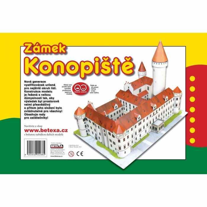 Středočeský zámek Konopiště v podobě jednoduché vystřihovánky. U vystřihovánky není použito žádné konkrétní měřítko. Tento typ vystřihovánky je vhodný pro začínající nebo mírně zkušené modeláře. Sešit vystřihovánky obsahuje celkem pouze 65 stavebních dílů, podrobný psaný a grafický návod na stavbu. A pro začínající i rady a tipy ke stavbě.