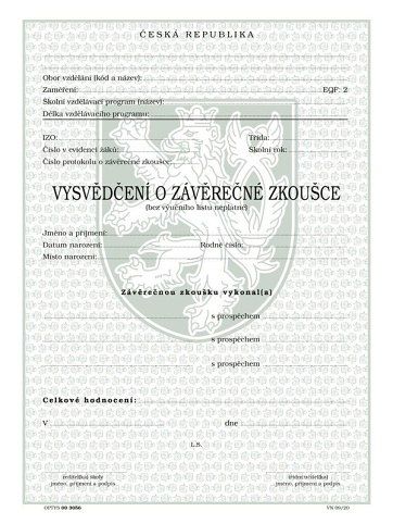Vysvědčení o závěrečné zkoušce (střední vzdělání s výučním listem )-dvouleté obory pro tisk QR kódu.
