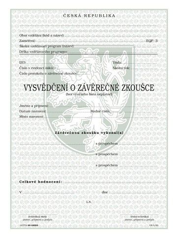 Vysvědčení o závěrečné zkoušce /střední vzdělání s výučním listem)-tříleté obory pro tisk