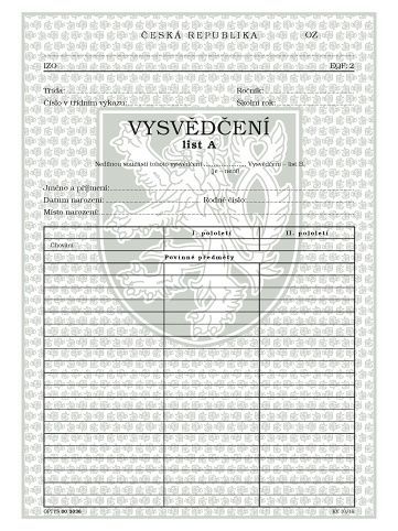 Vysvědčení jsou platná podle novely vyhlášky č. 3/ 2015 Sb., nový vzor z vyhlášky č. 300/ 2018.