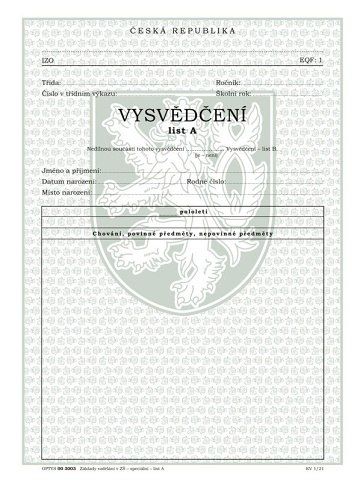 Vysvědčení o získání základu vzdělání v ZŠ speciální list A
