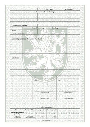 Vysvědčení jsou platná podle novely vyhlášky č. 3/ 2015 Sb., nový vzor z vyhlášky č. 300/ 2018.