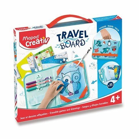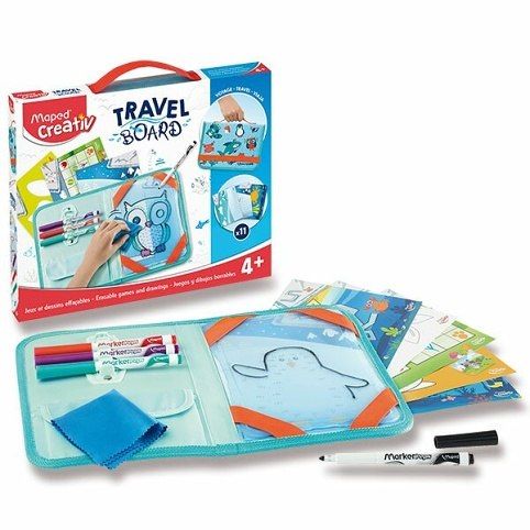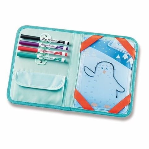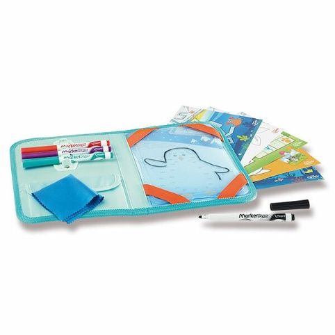 Cestovní kufřík obsahuje 1 transparentní tabulku, 4 barevné fixy Marker‚s Peps, 12 předloh s různými motivy a hadřík. Kreslit lze podle předloh, které je možné uchytit, pro snadnější malování, v kufříku. Fixy se dají z vymalovaných předloh smazat a malovat lze opakovaně znovu.Vhodné pro děti od 4 let.