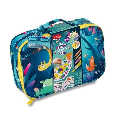 Textilní kufřík s motivem džungle uzavíratelný na zip a s rukojetí je ideální na cestování. Kufřík pro malé kreativce obsahuje 50 ks různých výtvarných potřeb pro snadné malování. Vhodné pro děti od 2 let.