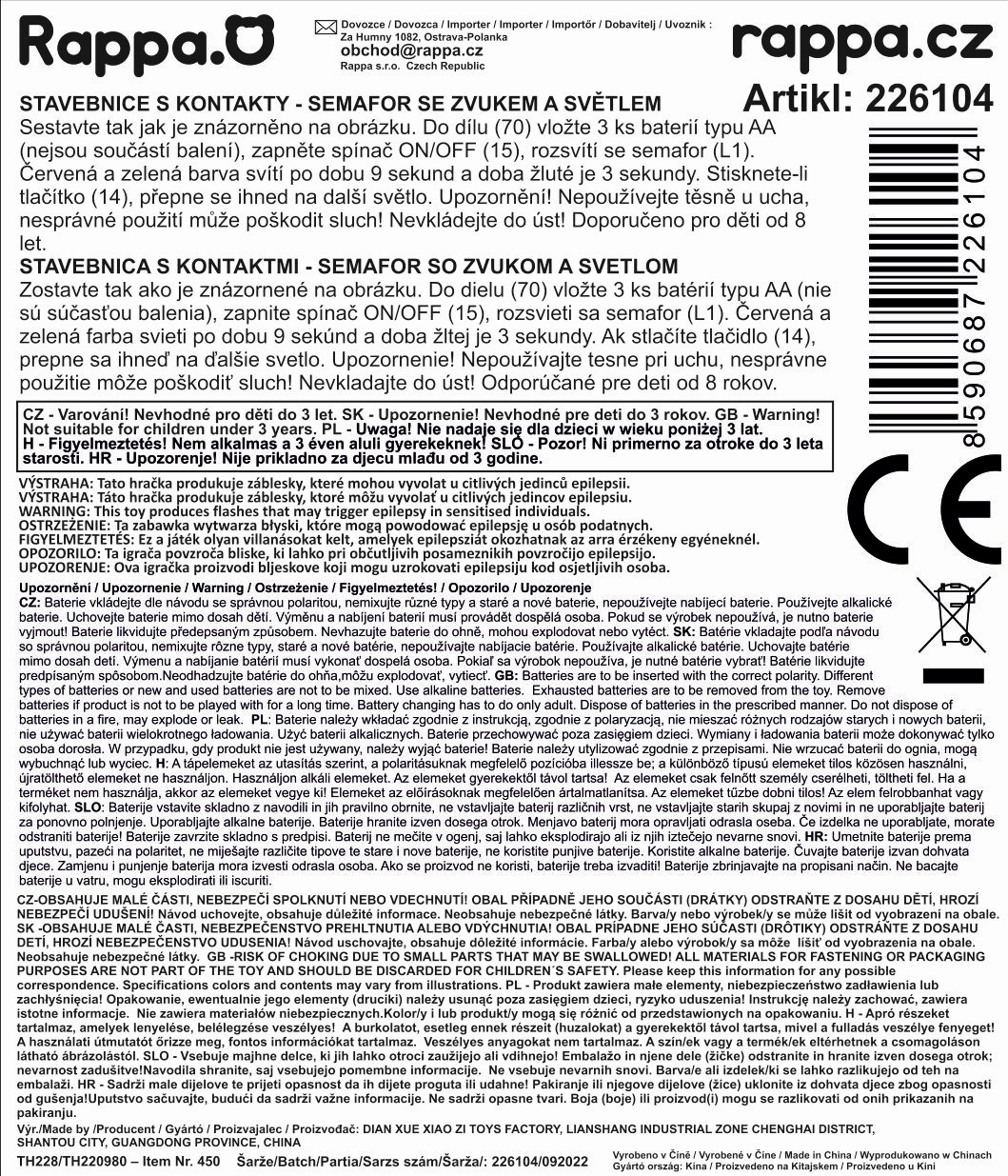 Funkční semafor, který si úplně sám sestavíš! Veškeré potřebné komponenty s kontakty na zapojení najdeš uvnitř balení. Pro spuštění je nutné použít 3 ks baterií typu AA, které nejsou součástí balení.