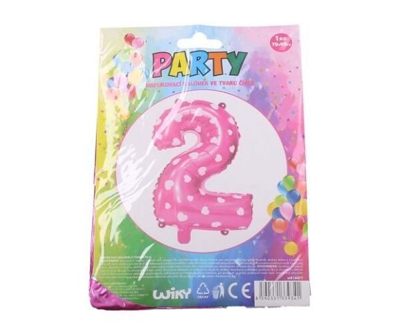 Nafukovací balónek ve tvaru čísla 2, balení obsahuje 1 ks, barva: růžová.
