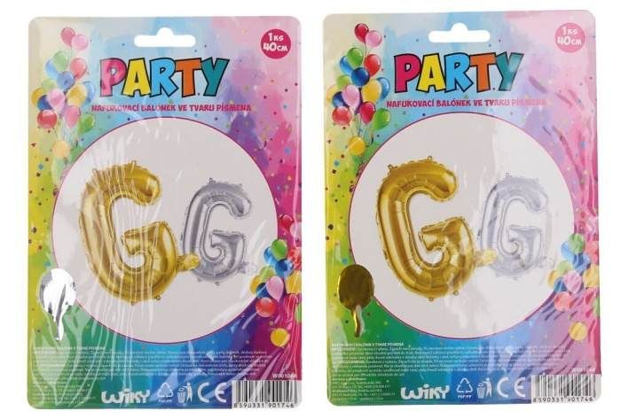 Nafukovací balónek ve tvaru písmene G, balení obsahuje 1 ks.