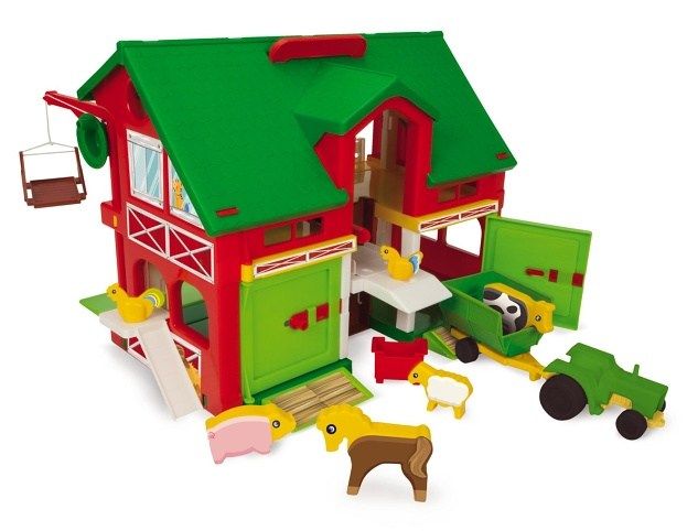 Na farmě můžete pomocí výtahu uklízet balíky sena, slepičky mají vlez do kurníku po žebříku, koník a kravička svoji stáj, prasátko svůj chlívek.