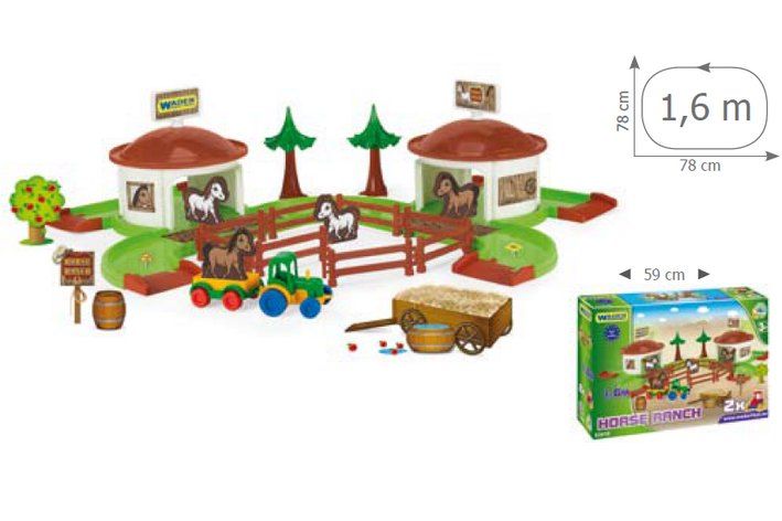 Jak se svými koníky naložíte už pak bude jenom na Vás. Kid Cars koňský ranč od Wader z Vás udělá hotového rančera.