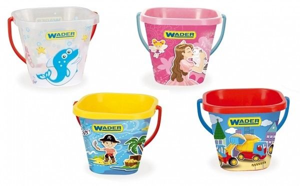 Krásný barevný hranatý kyblíček s potiskem od firmy Wader. Potisk kyblíku se provádí pomocí IML (In Mould Label) - obrázky jsou vloženy přímo do plastu, čímž je neodstranitelná.