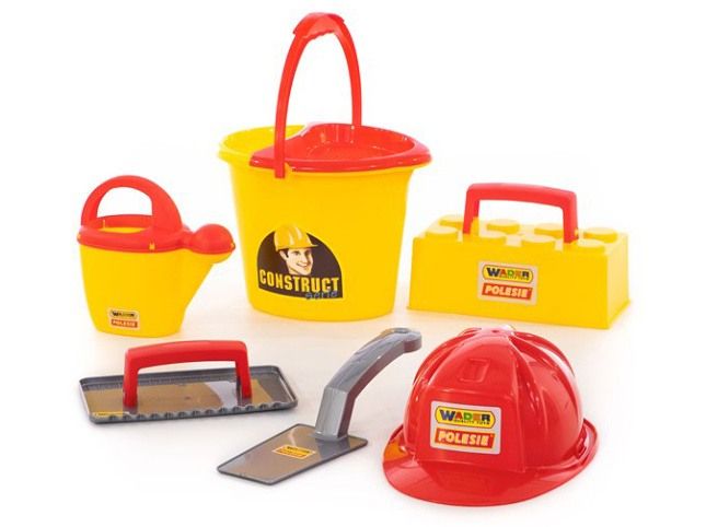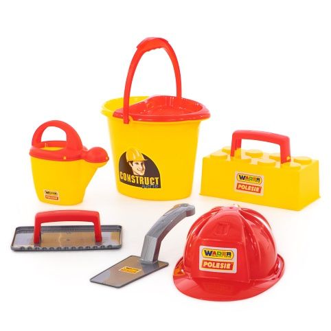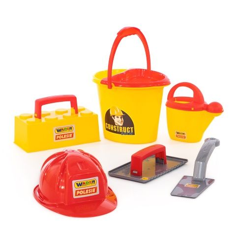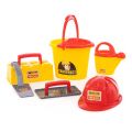 Wader Zednická sada ConsTruct. Obsahuje kyblík, konvičku, zednickou lžíci, helmu, formu na cihly, hladítko