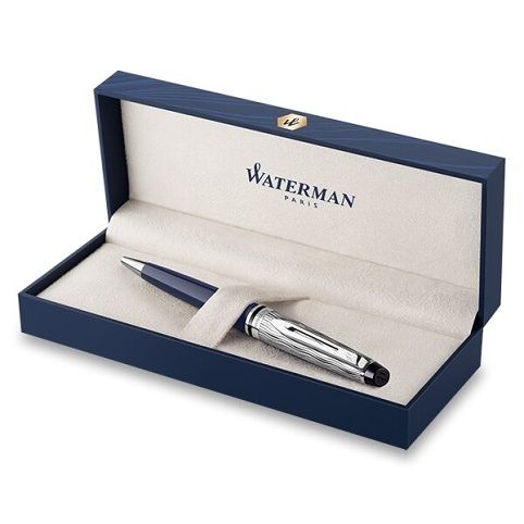 standardní náplň pro kuličkové tužky, dodáváno s modrou náplní, Dodáváno v dárkové krabičce., Speciální edice Made in France v jednotném provedení Deluxe Blue je k dispozici ve čtyřech kolekcích značky – Exception, Carene, Expert a Hémisphere. Modely spojuje unikátně lakované, temně modré tělo, vlnkový vzor a především špičkové řemeslné zpracování. Edice Made in France je oslavou 130leté tradice značky Waterman. Nepřetržitý pohyb a ruch velkoměsta., Vysoké domy, nablýskaná auta, vážná obchodní jednání během dne a energií nabitá sportovní utkání či emocí plné kulturní události večer. Přesně tuto atmosféru vystihuje, modelová řada Expert.