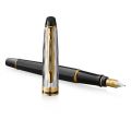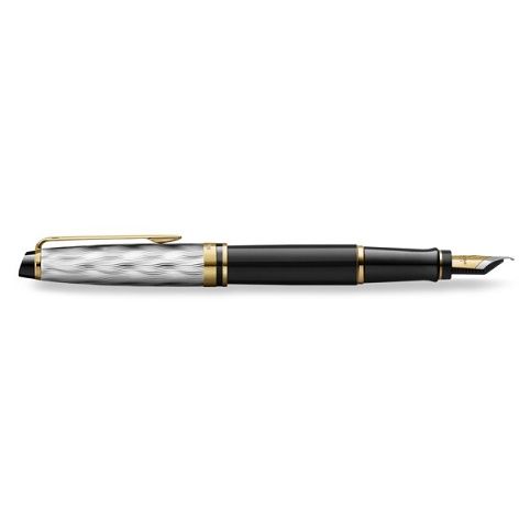 Plnicí pero Waterman Expert Reflections of Paris SE DLX Black GT s černě lakovaným mosazným tělem. Mosazné víčko s vlnkovou reliéfní rytinou vyvedenou leptáním a pokovené palladiem. V kombinaci s pozlacenými doplňky. Hrot z ušlechtilé nerezové oceli pokovený zlatem.
