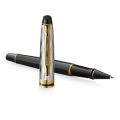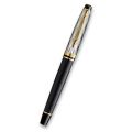 Roller Waterman Expert Reflections of Paris SE DLX Black GT s černě lakovaným mosazným tělem. Mosazné víčko s vlnkovou reliéfní rytinou vyvedenou leptáním a pokovené palladiem. V kombinaci s pozlacenými doplňky. Hrot z ušlechtilé nerezové oceli pokovený zlatem.