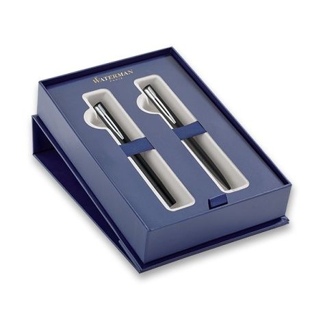 Sada plnicí pero a kuličková tužka v dárkové kazetě. Lakované mosazné tělo s pochromovanými doplňky z nerezové oceli. Hrot z ušlechtilé nerezové oceli.Plnicí pero:nasazovací víčkohrot z nerezové ocelimožnost použití jak inkoustových bombiček, tak i plnění z lahvičkového inkoustuKuličková tužka (kuličkové pero, propiska):stiskací mechanismus ve víčkustandardní náplň pro kuličkové tužky, dodáváno s modrou náplníDodáváno v dárkové kazetě.