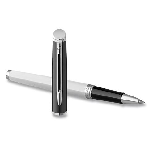 Roller Waterman Hémisphere Colour Blocking Black & White CT má bíle lakované mosazné tělo, úchopovou část a víčko v černé barvě. V kombinaci s doplňky pokovenými palladiem.