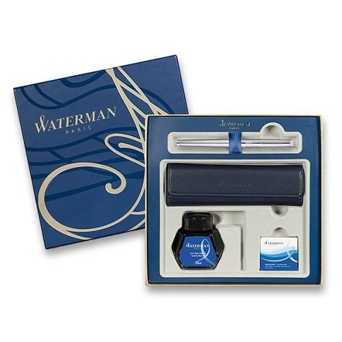 Waterman Hémisphere Stainless Steel CT plnicí pero, dárková sada s pouzdrem a inkoustem