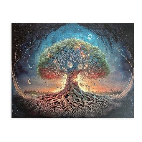 Dřevěné puzzle díky jedinečným vzorům a designům dají pod vašima rukama vzniknout unikátním výtvorům. Rozvíjejte kreativitu s neobvyklými tvary jednotlivých dílků. Každý z nich má unikátní tvar. Mezi tvary dílků najdete i takové, které jsou vyřezány do tvarů různých druhů zvířat a rostlin. Po složení můžete dřevěné puzzle využít k dekoraci. Vyrobeno z recyklovaných materiálů. Velikost složeného obrázku odpovídá velikosti A2. Počet dílků 500 ks. Obsah produktu – krabička, úložný pytlíček, podlepovací podložka, oboustranné lepicí podložky na zeď.