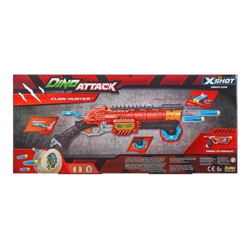 Pozor! Dinosauři útočí! Zničte jejich vejce a zabraňte jejich dalšímu množení. Tato jedinečná zbraň vám umožní dostřelit až do vzdálenosti 27 metrů. Dvoukomorová hlaveň vám dovolí rychlou střelbu. Navíc si náhradní náboje můžete připevnit do praktických držáků v horní části zbraně. Zbraň je bezpečná, vyrobena z kvalitního plastu a umožní vám přesnou střelbu. Věk: 8+, obsahuje: zbraň, 24 nábojů a 5 dinosauřích vajec.