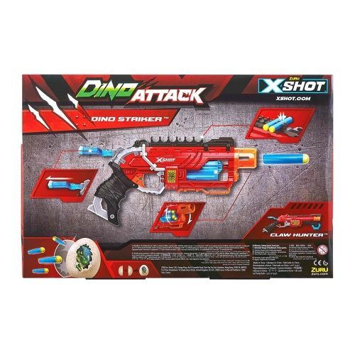 Pozor! Dinosauři útočí! Zničte jejich vejce a zabraňte jejich dalšímu množení. Tato jedinečná zbraň vám umožní dostřelit až do vzdálenosti 27 metrů. Otočný zásobník vám dovolí rychlou střelbu. Navíc si náhradní náboje můžete připevnit do praktických držáků v horní části zbraně. Zbraň je bezpečná, vyrobena z kvalitního plastu a umožní vám přesnou střelbu. Věk: 8+, obsahuje: zbraň, 16 nábojů a 3 dinosauří vejce.