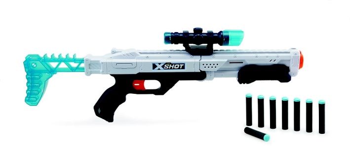Tato zbraň je určená pro opravdové odstřelovače. Díky hledáčku jste schopní přesně zacílit a zasáhnout cíl až na vzálenost 27 metrů. Věk: 8 +. Obsah: zbraň, hledáček a 16 nábojů.