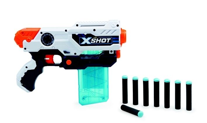 Tato zbraň vám umožní díky praktickému zásobníku na jedno nabití vystřelit v rychlém sledu po sobě až 10 šipek, a to do vzdálenosti až 24 metrů. Věk: 8 +. Obsah: zbraň, zásobník a 16 nábojů.