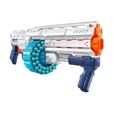 Toto je zbraň pro opravdové střelce. Díky otočné hlavni můžete rychle vypálit 40 nábojů na vzdálenost až 27 metrů. Předností této zbraně je také velká přesnost. Věk: 8 +. Obsah: zbraň a 16 nábojů.