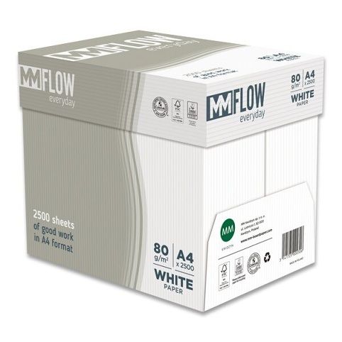 Univerzální, bezdřevý, nenatíraný kancelářský papír FLOW Everyday určený pro každodenní použití. Ideální pro vysokoobjemové černobílé kopírování, černobílý inkoustový i laserový tisk a do faxů.