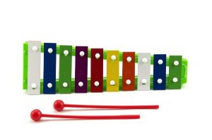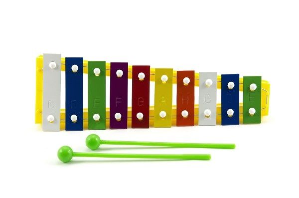 Xylofon je ideální první nástroj pro malé hudebníky. Nástroj je sestavený z řady různě velkých kovových desek, díky kterému se dítě učí tóny a učí se hrát jednoduché melodie skladeb pomocí dvou hůlek.Velikost 26 cm. Vhodné od 3 let.