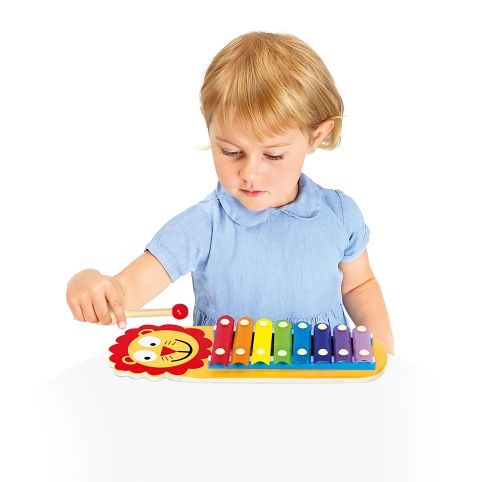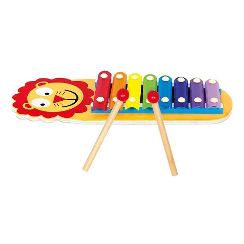 Dětský xylofon s motivem lvíčka. 3-dílná sada s 8 kovovými zvukovými pláty, které nabízejí hraní v plném rozsahu. Xylofon nabízí dětem příležitost seznámit se se základy hudby a rozvíjet svůj hudební talent. Je tak ideální hračkou pro první dětské hudební kroky.