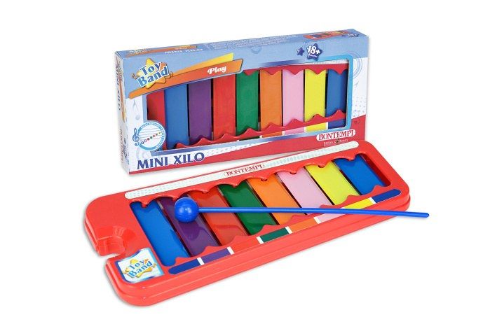 Xylofon tvořený 8 barevnými kovovými deskami / notami (C-C)