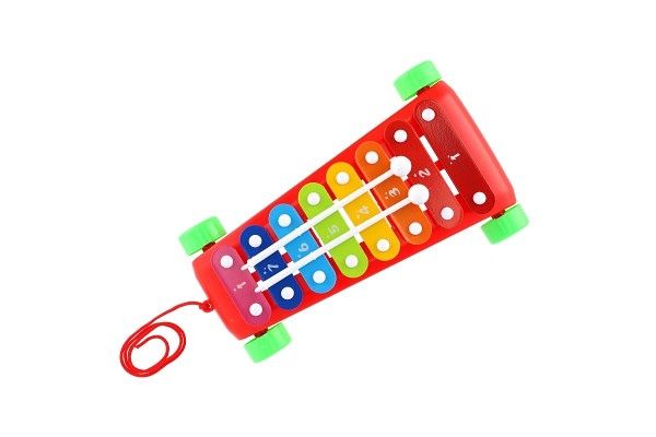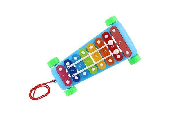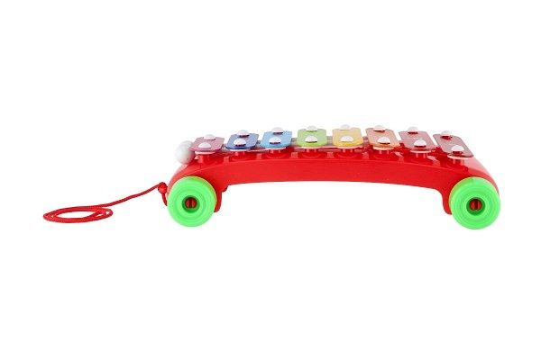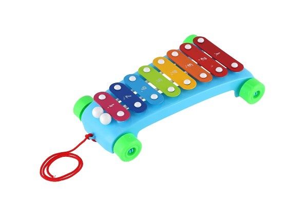 Zábavný tahací xylofon s 8 barevnými klávesami a 2 paličky povzbuzuje děti k hudební kreativitě. Hračka je z plastu s kovovými destičkami. Xylofon má kolečka a provázek na tahání, takže si jej děti mohou vzít kamkoliv sebou!