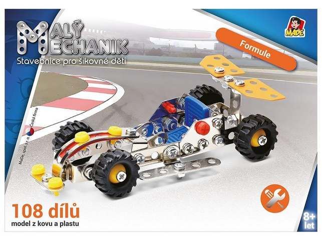 Malý mechanik - formule, 108 dílů, 20 x 30 x 4 cm. Skvělá stavebnice, která rozvíjí logické myšlení a pomáhá k procvičení jemné motoriky. Hračka je určena pro děti 3+. Rozměr balení hračky je 20 x 30 x 4 cm. Materiál hračky je kov. Balení hračky je box. Produkt je určený pro kluky.