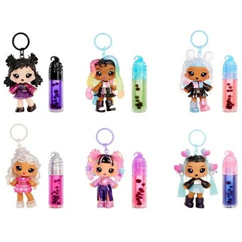 Vyrob si svůj vlastní lesk na rty s těmito sladkými a trochu drzými panenkami. 1. Otevři tubu s leskem na rty. 2. Přidej do tuby barvu. 3. Sleduj, jak kapky barvy vytvářejí efekt lávové lampy. V sérii můžeš vybírat ze 2 vůní. Roztomilá voňavá panenka má outfit a boty, které můžeš sundat. Panenku i lesk na rty si můžeš vzít na cesty, stačí spojit s přívěskem na klíče. Velikost panenky cca 10 cm. 6 panenek v sérii. Obsah balení: • 1 panenka • 1 lesk na rty • 1 barva do lesku na rty • 1 přívěsek na klíče