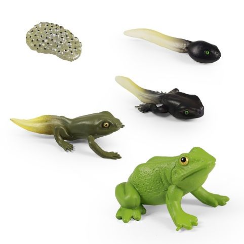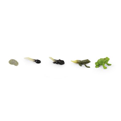 Soubor replik pět stádii životního cyklu žáby, vás provede proměnou od vajíček, přes pulce, pulce bez žaber a pulce s nožičkami až po dospělou žábu. Objevujte a zkoumejte se svými dětmi téměř zázračné proměny přírody prostřednictvím těchto realistických miniatur. Velikost žáby je cca 5 cm.