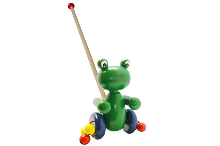Jezdící žába na tyči Studo Wood je vhodná alternativa tahacích hraček. Roztomilá žabka udělá radost každému mrňousovi. Barevné korálky se při chůzi a pohybu točí.