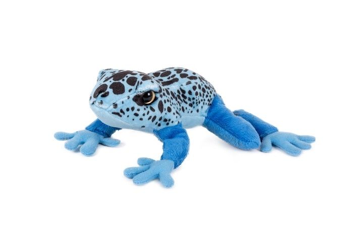 Originální plyšová žába v modrém provedení zaujme na první pohled svým realistickým designem a výrazným zbarvením. Díky ležící pozici a jemnému, hebkému materiálu je ideální na mazlení i hraní.