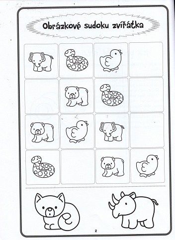 Pojďte si užít plno zábavy s touto bezva cvičebnicí pro předškoláky, obrázkovým sudoku. Funguje stejně jako číselné, děti ale místo čísel doplňuji obrázky. Ty mohou vystřihnout přímo z knihy, mohou je použít jako obrázky pro sudoku a doplňovat na chybějící políčka v knize, nebo také jako pexeso. Navíc si je mohou vybarvit. Tato zábavná cvičebnice podporuje logické myšlení předškolních dětí.