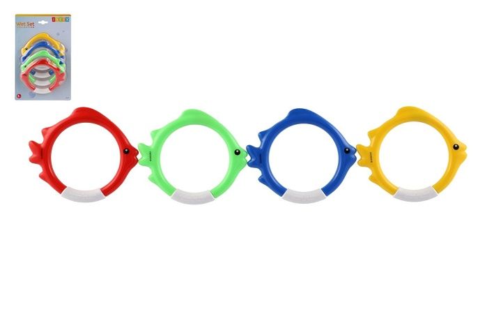 Zábavné kruhy/ryby 4ks pro potápění ve vodě plast 10cm na kartě