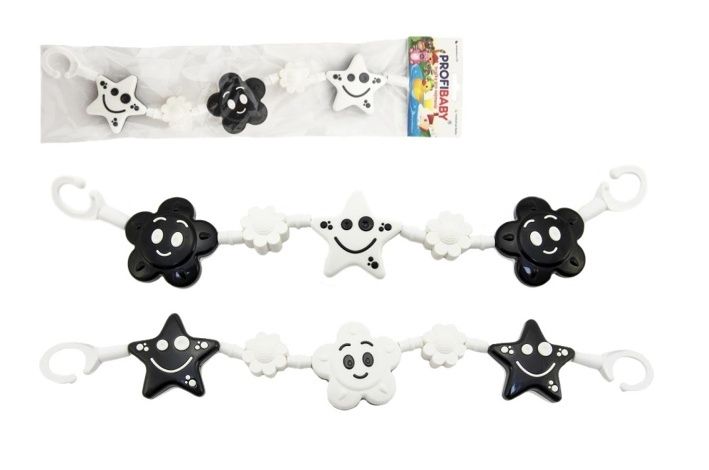 Zábrana na kočárek hvězdička černobílá. Hračka je vyrobena v Česku, bez ftalátů a má české atesty.