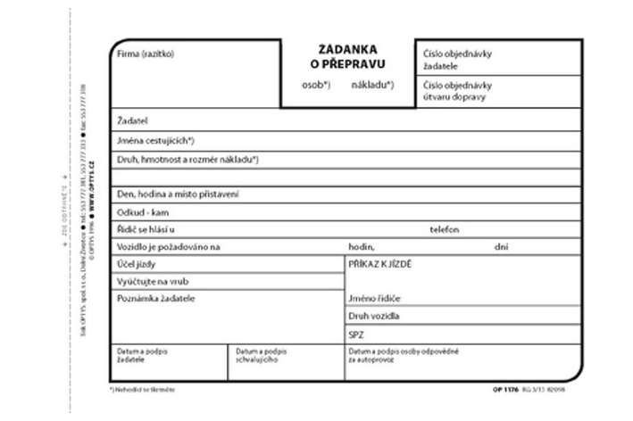 - PAPÍRNICTVÍ / TISKOPISY / DOPRAVA / Žádanky o přepravu / A6 / OPTYS