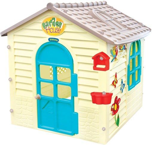 Zahradní domeček s ptačí budkou. Domeček má zavírací dvěre a okna. Obsahuje příslušenství – ptačí budku, nástěnku na malování a polepky. Velikost domečku 122,5×120×120,5 cm. Vyrobeno z vysoce kvalitního plastu v EU.