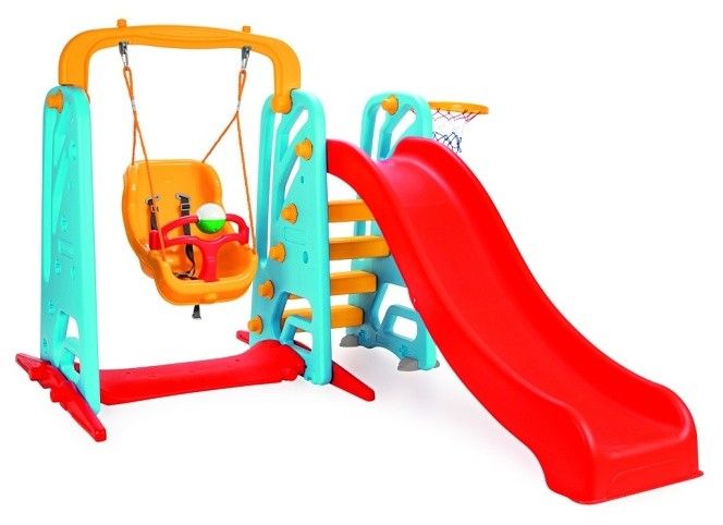 Zahradní sestava houpačka + skluzavka. Kvalitní zpracování, velmi stabilní. Houpačka je vybavena bezpečnostním pásem, spodní část lze vyplnit pískem Maximální nosnost 35 kg.