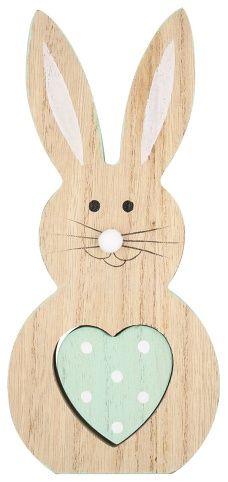 Zajíc dřevěný na postavení s mentolovým srdcem 16 cm