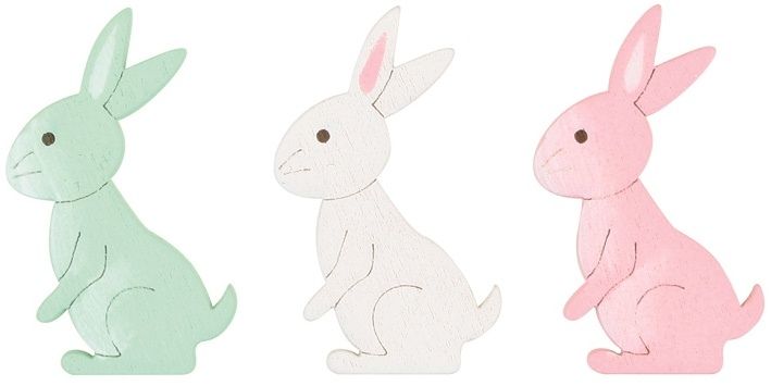 Zajíc dřevěný s lepíkem 4 cm 24 ks v krabičce pastelové barvy