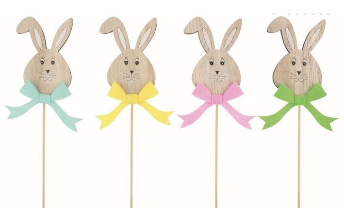 Zajíc dřevěný s mašlí 6 x 9 x 0,5 cm + špejle