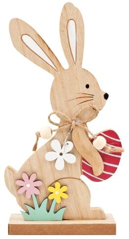 Zajíc dřevěný s vajíčkem na postavení 18 cm